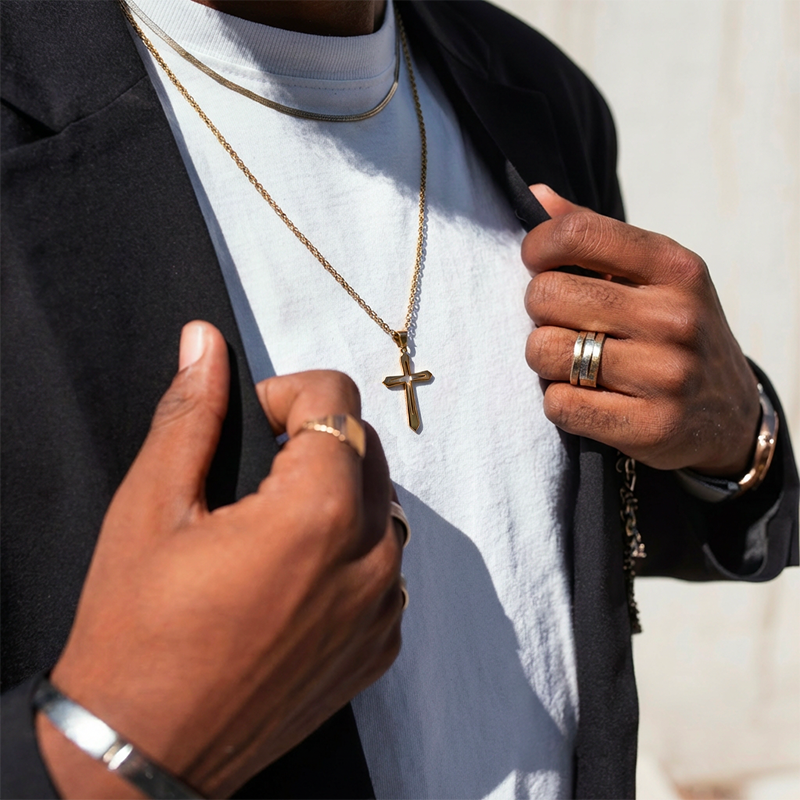 Le pendentif Aeternus revisite la croix par des volumes nets et une silhouette singulière, pour un éclat maîtrisé et moderne, comme un symbole personnel de constance, à porter seul ou en accumulation.